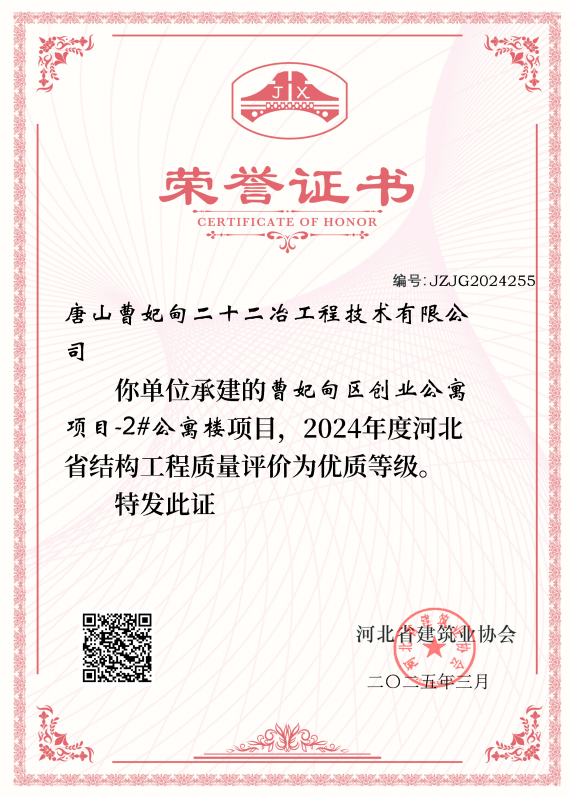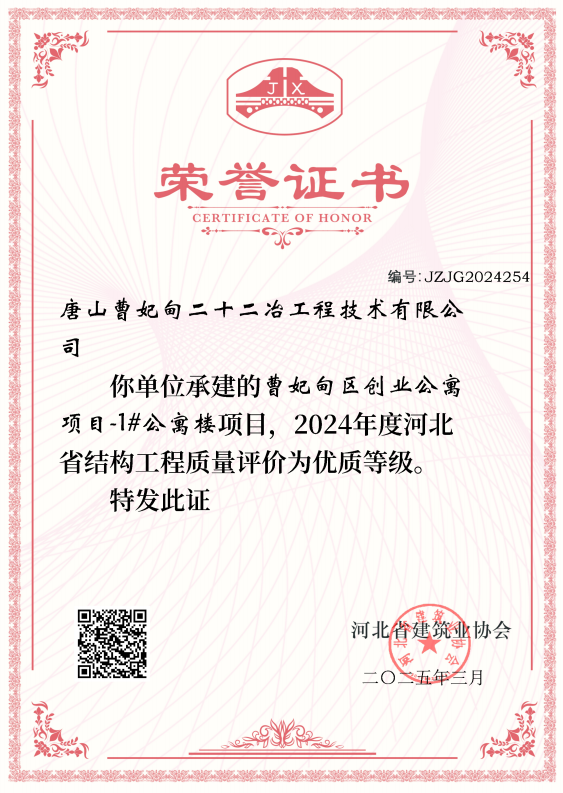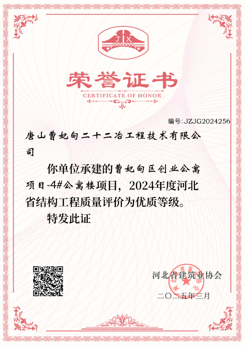 近日,曹妃甸技術(shù)公司曹妃甸區(qū)創(chuàng)業(yè)公寓項目1、2、4號公寓樓分別榮獲河北省結(jié)構(gòu)優(yōu)質(zhì)工程獎。