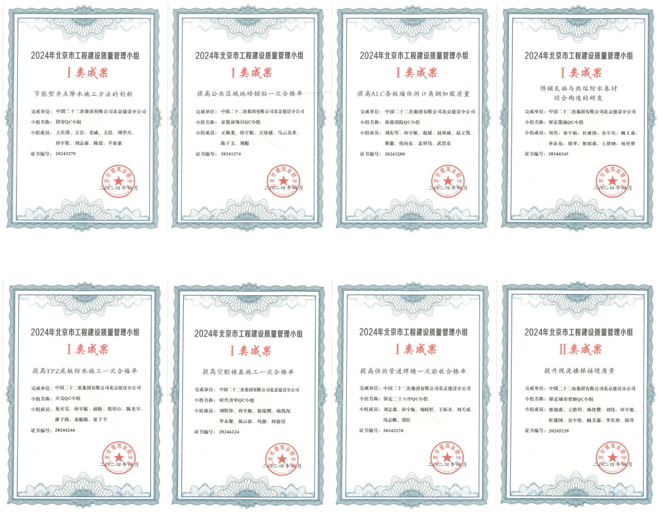 4月17日,在北京市建筑業(yè)聯(lián)合會(huì)組織的2024年度QC競(jìng)賽活動(dòng)中,崇建公司8項(xiàng)參賽成果全部入圍,最終獲得省部級(jí)一等獎(jiǎng)7項(xiàng),二等獎(jiǎng)1項(xiàng),時(shí)隔一年再次刷新了崇建公司在屬地化質(zhì)量管理活動(dòng)競(jìng)賽中的最好成績(jī),其中一等獎(jiǎng)獲獎(jiǎng)數(shù)量超過(guò)了以往屬地化競(jìng)賽活動(dòng)一類(lèi)獎(jiǎng)項(xiàng)的總和,成果總體水平提升明顯。