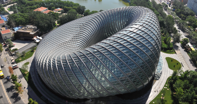 鳳凰國際傳媒中心項(xiàng)目位于北京朝陽公園西南角,占地面積1.8公頃,總建筑面積6.5萬平方米,建筑高度55米。建筑造型取意于“莫比烏斯環(huán)”,這一造型與不規(guī)則的道路方向、轉(zhuǎn)角以及和朝陽公園形成和諧的關(guān)系。
