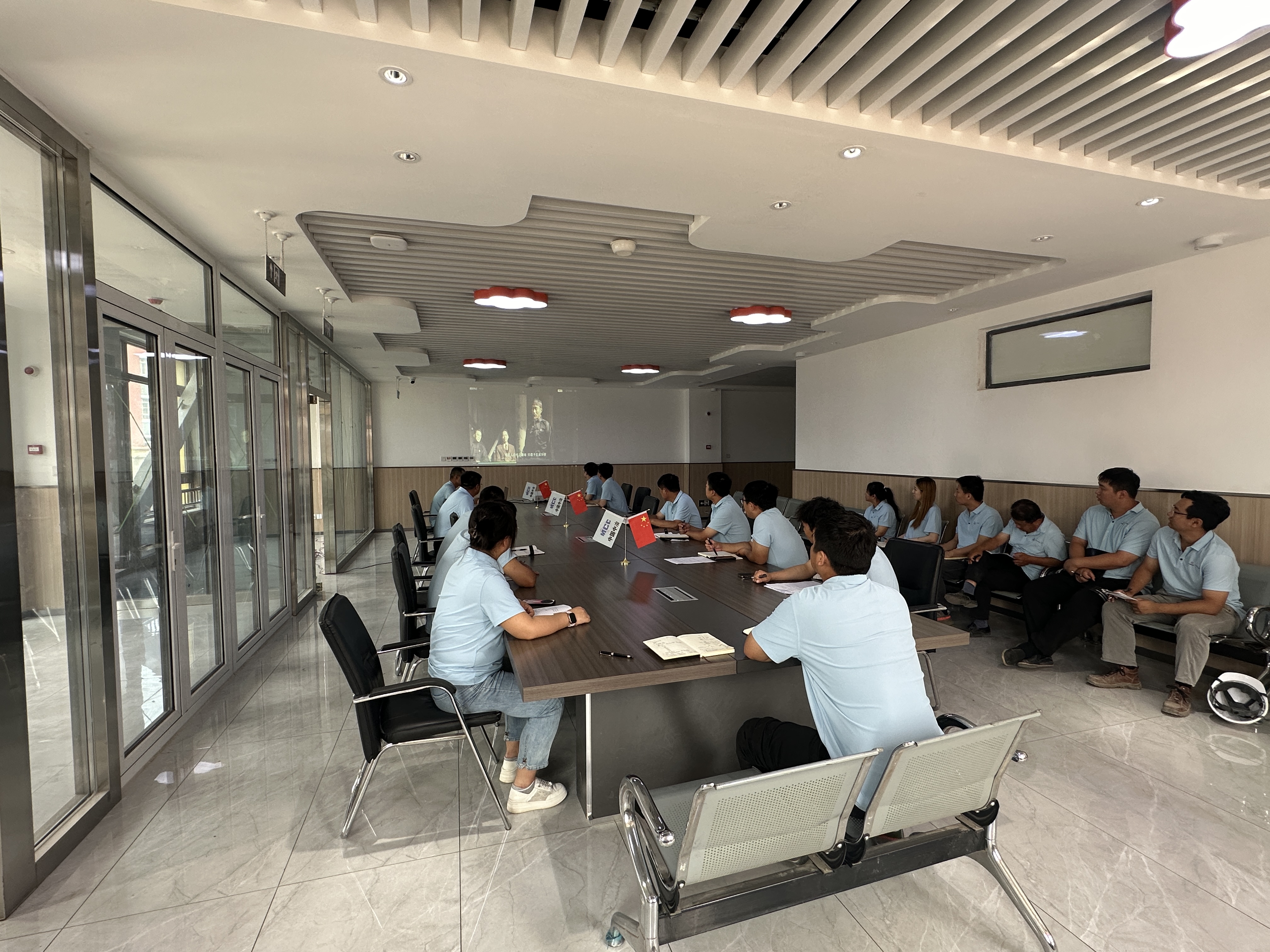 玉田職教中心項目黨支部開展“迎七一 強黨性 守初心 勇?lián)敗敝黝}黨日活動。組織全體員工觀看紅色電影《建黨偉業(yè)》。電影全景式的講述了辛亥革命、護國戰(zhàn)爭、五四運動等歷史事件,準確的呈現(xiàn)了中國共產(chǎn)黨誕生的歷史背景。隨后,組織集體生日會,共同慶祝中國共產(chǎn)黨成立103周年。全體員工紛紛表示,不忘初心、牢記使命,帶領干部和群眾攻堅克難,早日完成項目建設任務,用實際行動為企業(yè)發(fā)展貢獻自己力量。