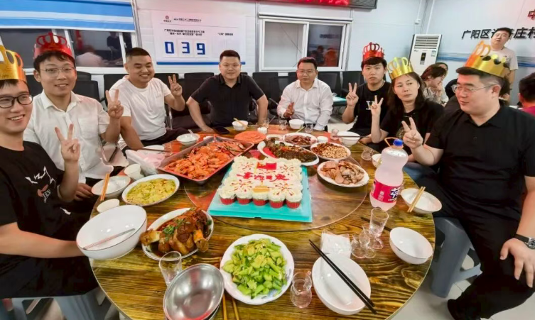 近日,山東公司廊坊許各莊項目為員工舉辦了一場溫馨融洽的集體生日會,為近期過生日的同事送上誠摯祝?!,F(xiàn)場準備了精美的蛋糕,燭光閃爍中,壽星們共同許下心愿,大家在祝福聲中分享甜蜜,氣氛熱烈而融洽。