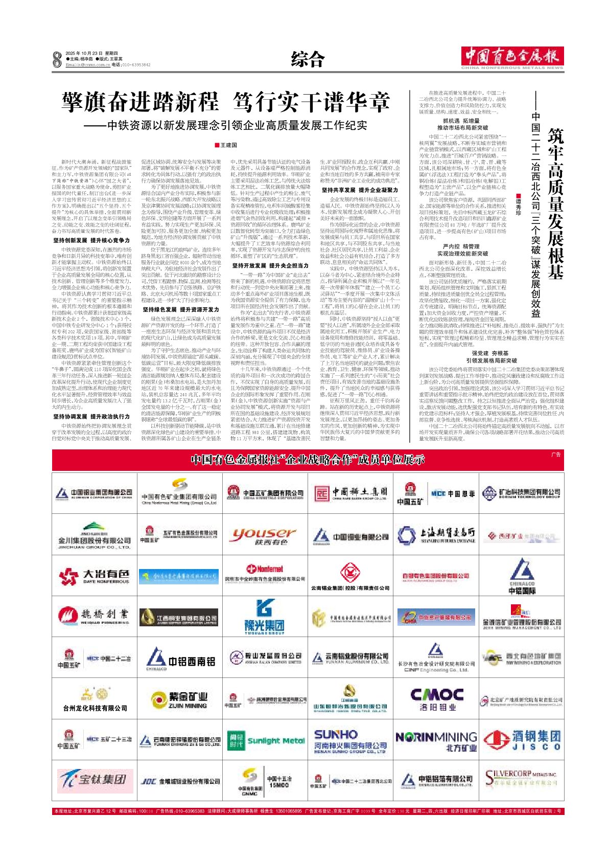 中國有色金屬報:筑牢高質(zhì)量發(fā)展根基——中國二十二冶西北公司“三個突破”謀發(fā)展創(chuàng)效益