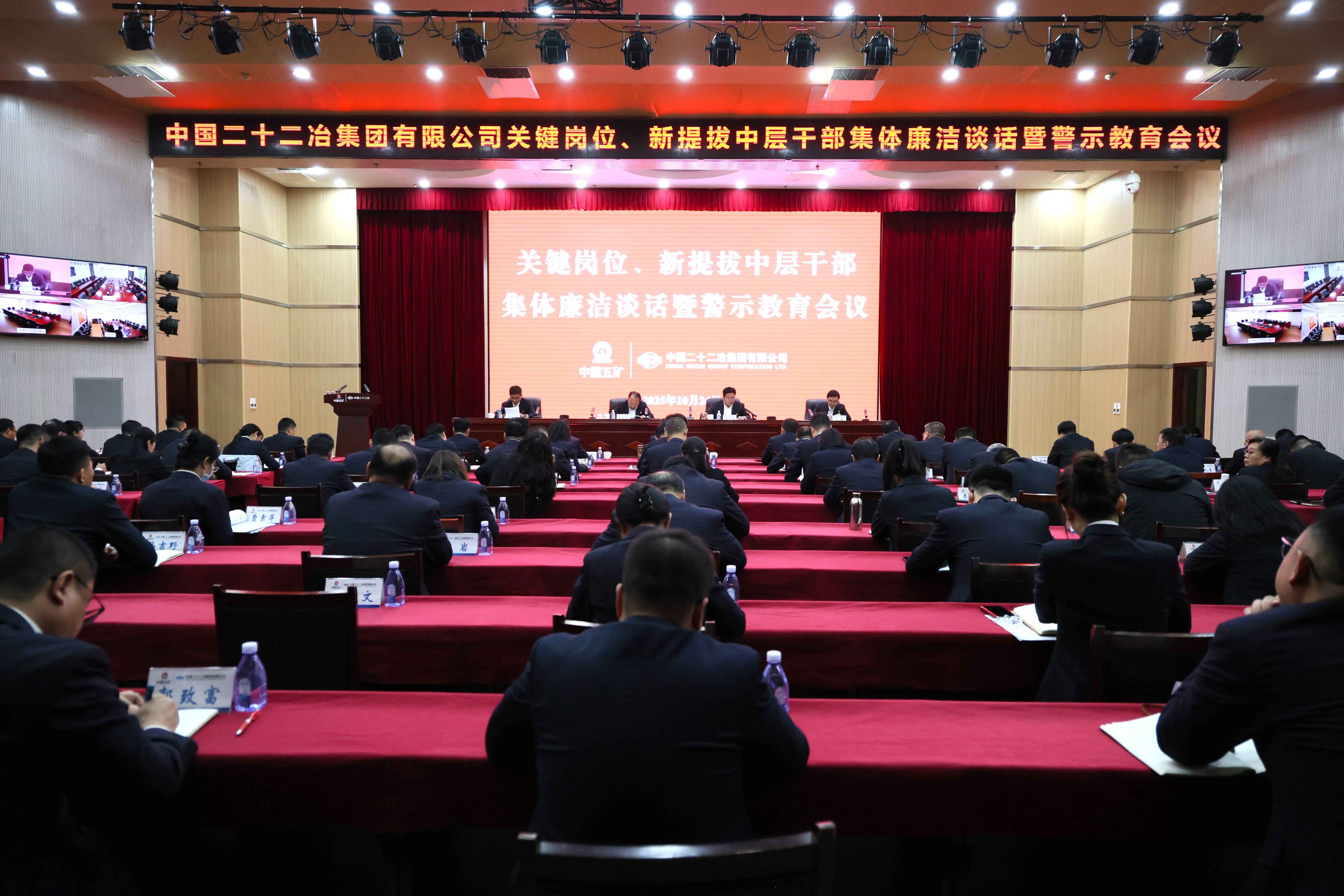 10月24日,中國二十二冶召開關(guān)鍵崗位、新提拔中層干部集體廉潔談話暨警示教育會。中國二十二冶黨委書記、董事長袁斯浪出席會議并講話,黨委副書記、職工董事張育鵬主持會議并作集體任職談話,紀(jì)委書記田和平做警示教育和集體廉潔談話。